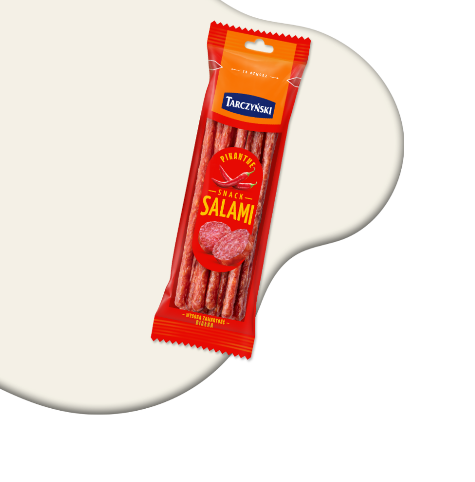 Salami Snack to prawdziwy klasyk w NOWEJ odsłonie! Produkt, który znasz i kochasz, teraz w formie wygodnej przekąski. Poręczne, pełne smaku i absolutnie unikalne na rynku, z pikantnym charakterem, który dodaje wyrazistości i zaskakuje ostrością. Spróbuj i odkryj salami na nowo!
